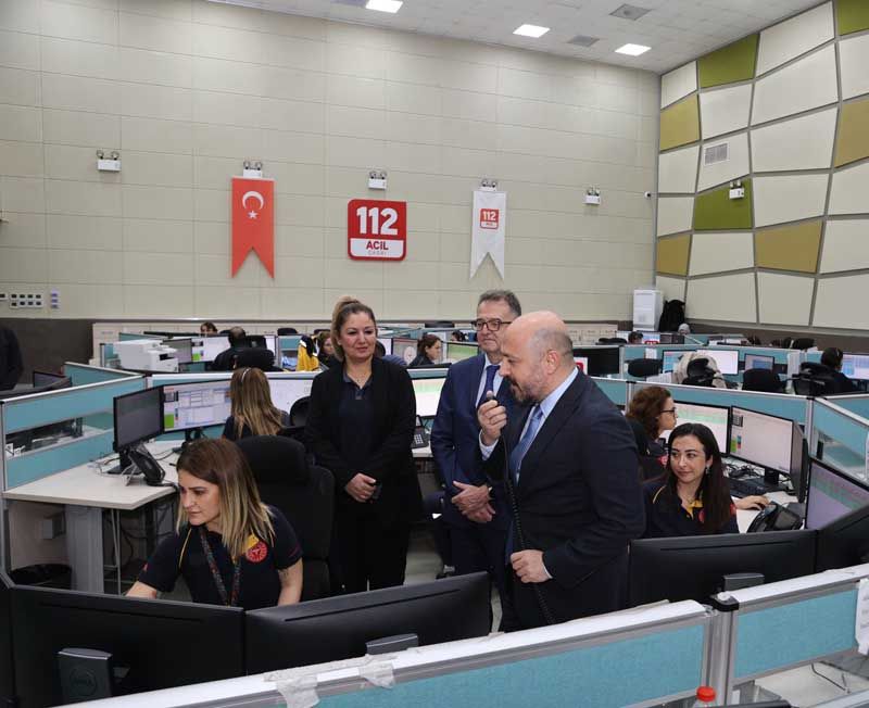 Adana İl Sağlık Müdürü Uzm. Dr. Halil Nacar, 1–7 Aralık Acil Sağlık Hizmetleri Haftası münasebetiyle, Adana 112 Komuta Kontrol Merkezini ziyaret ederek görev başındaki mesai arkadaşlarıyla bir araya geldi.